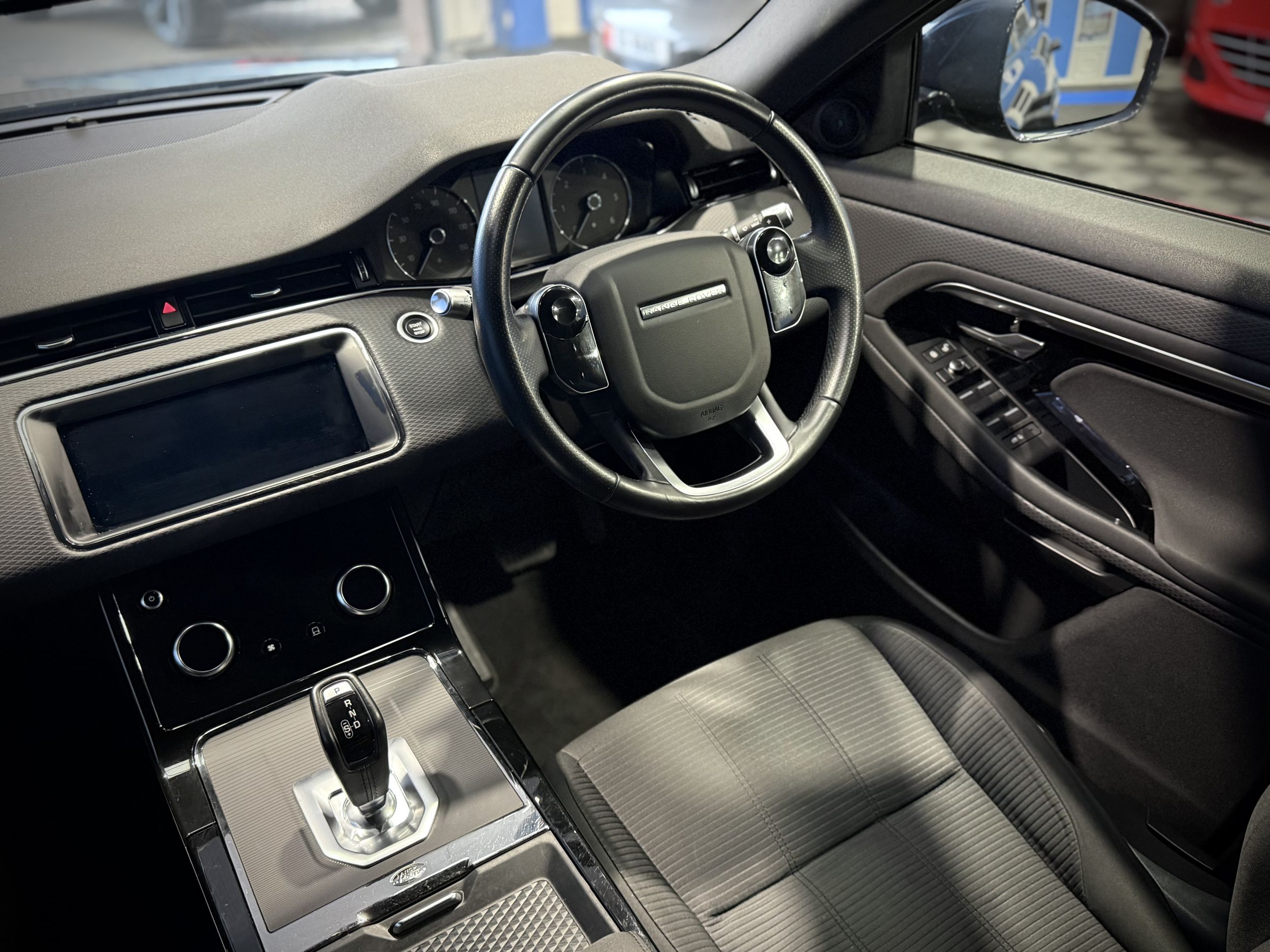 Inside, the Evoque features a modern, high-quality cabin finished with premium materials and a clean, contemporary layout. The intuitive Touchscreen infotainment system, satellite navigation, Apple CarPlay and Android Auto, dual-zone climate control, and front and rear parking sensors provide comfort, connectivity, and convenience on every drive. The elevated driving position and supportive seating further enhance the premium feel.